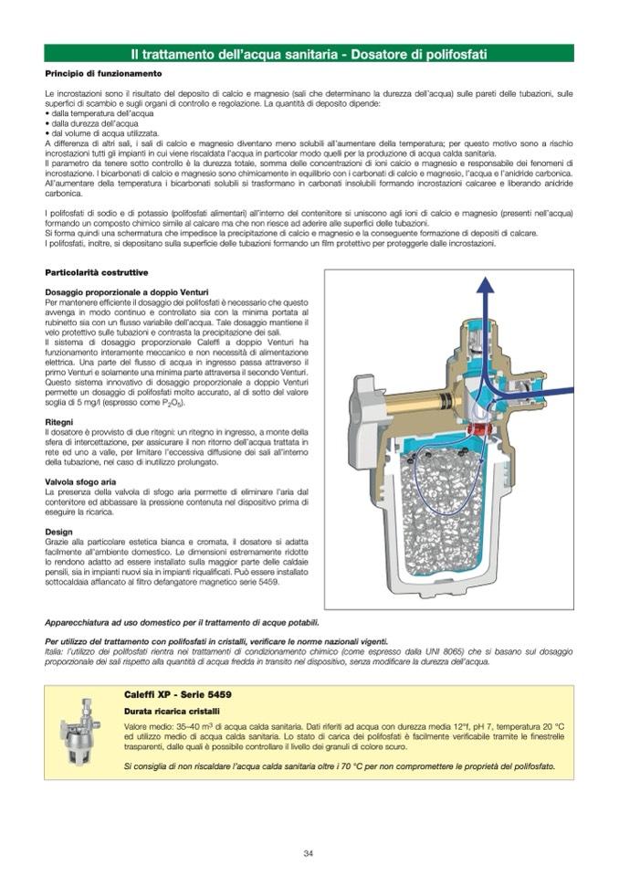 Per utilizzo del trattamento con polifosfati in cristalli, verificare le norme nazionali vigenti.