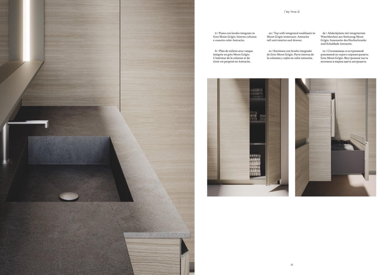 intégrée en grès Moon Grigio.