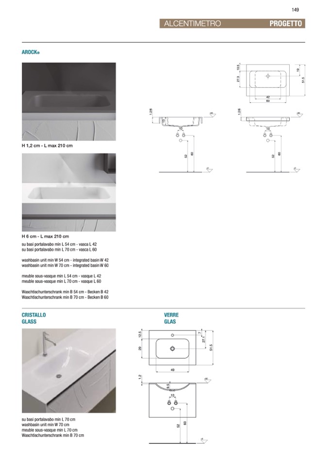 su basi portalavabo min L 54 cm - vasca L 42