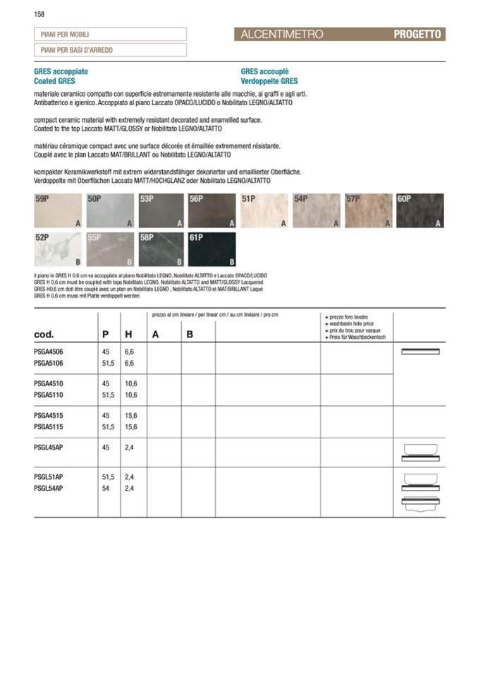 GRES H 0,6 cm must be coupled with tops Nobilitato LEGNO, Nobilitato ALTATTO and MATT/GLOSSY Lacquered