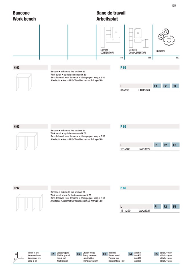 Bancone • a richiesta foro lavabo € 60