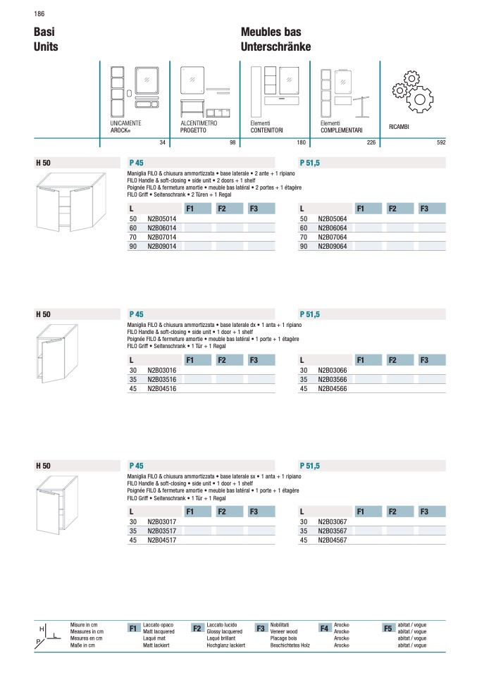 FILO Handle & soft-closing • side unit • 1 door + 1 shelf