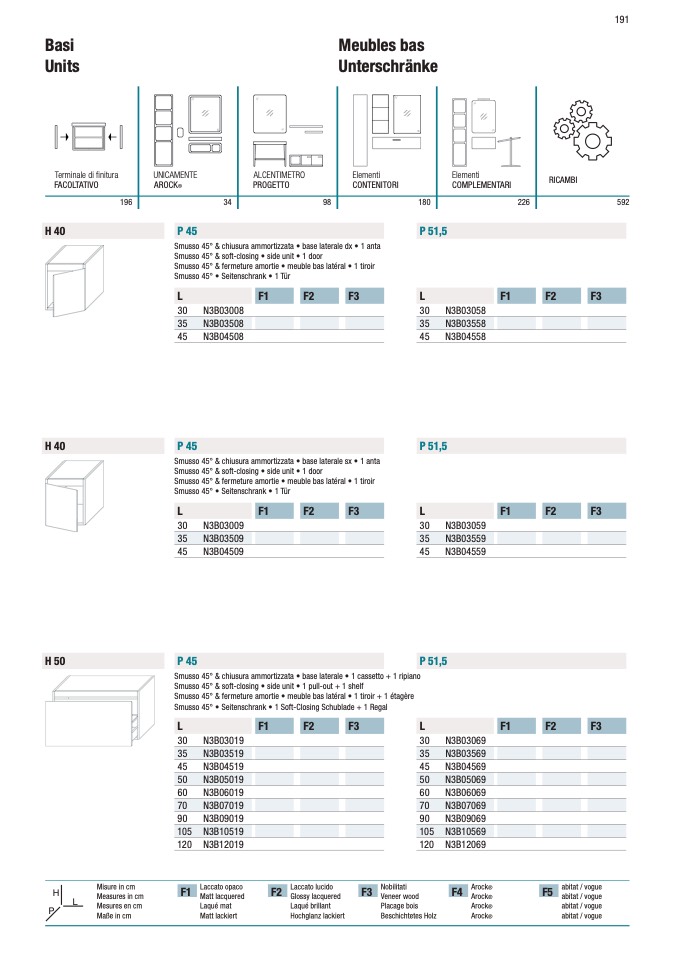 Smusso 45° & fermeture amortie • meuble bas latéral • 1 tiroir