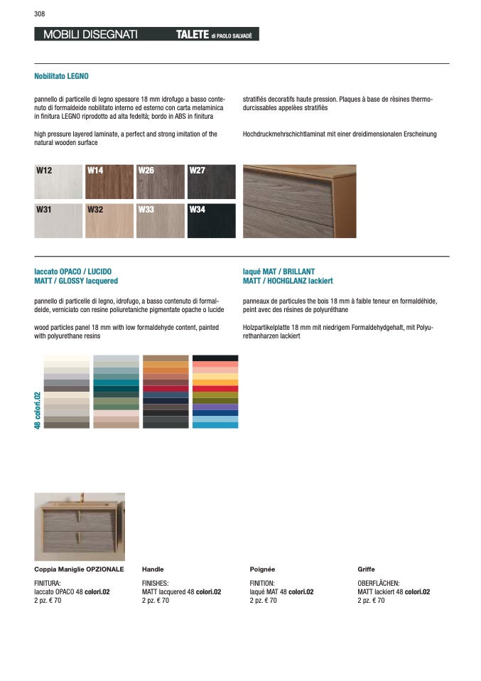 in finitura LEGNO riprodotto ad alta fedeltà; bordo in ABS in finitura