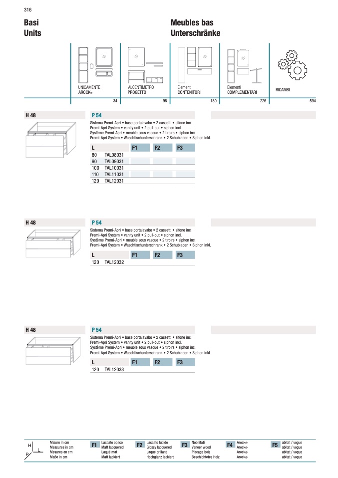 Premi-Apri System • vanity unit • 2 pull-out • siphon incl.