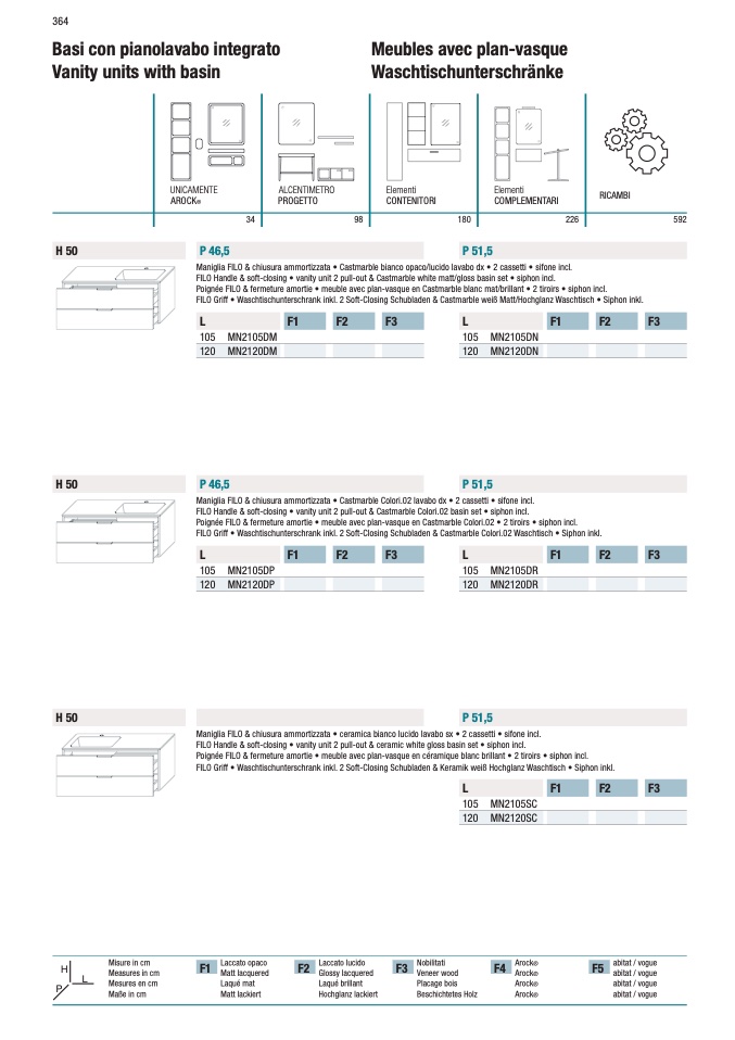 FILO Handle & soft-closing • vanity unit 2 pull-out & Castmarble Colori.02 basin set • siphon incl.