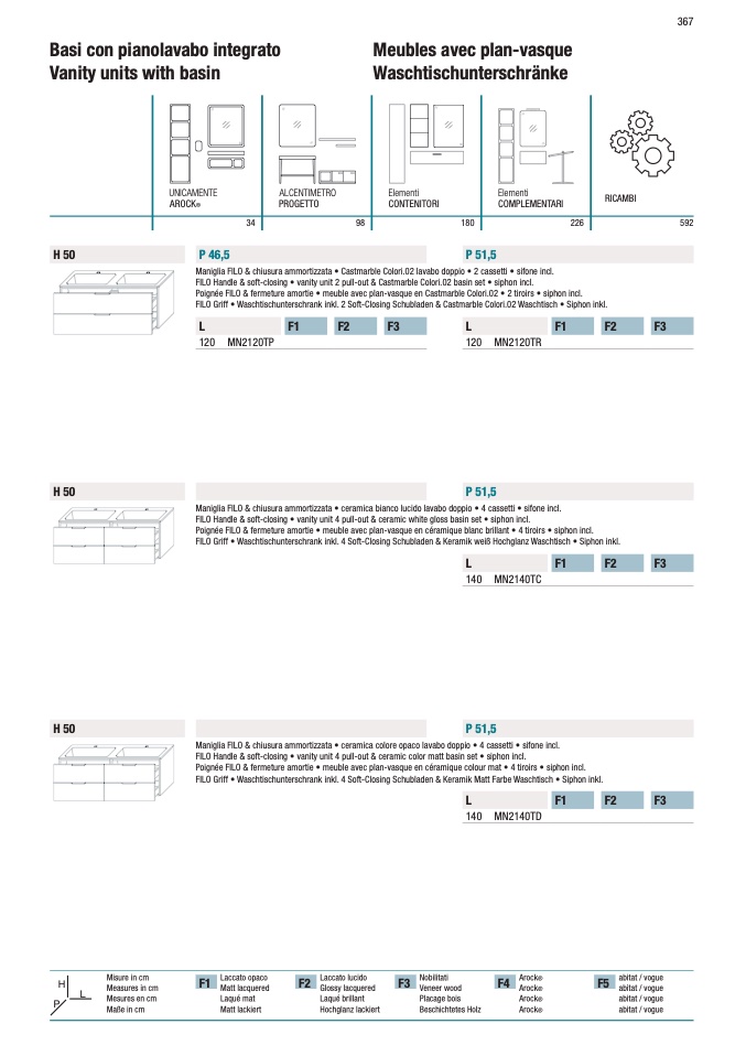 FILO Handle & soft-closing • vanity unit 4 pull-out & ceramic color matt basin set • siphon incl.