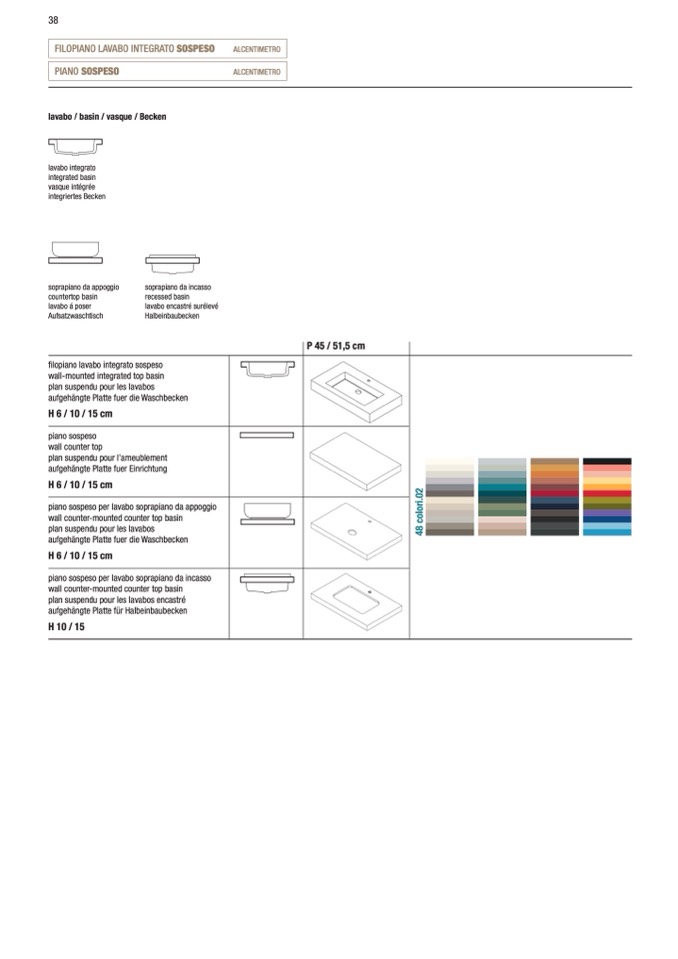 FILOPIANO LAVABO INTEGRATO SOSPESO