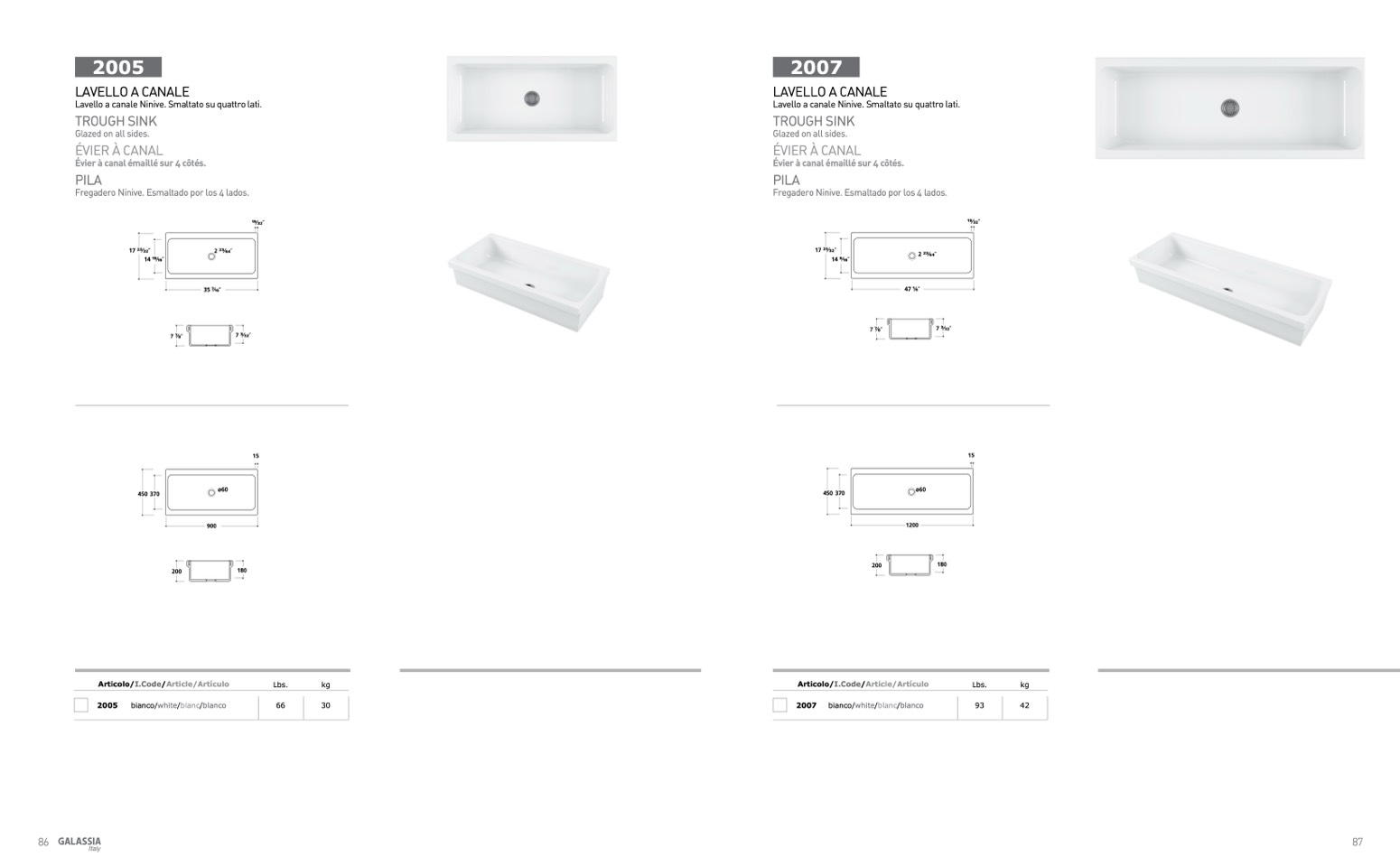 Lavello a canale Ninive. Smaltato su quattro lati.