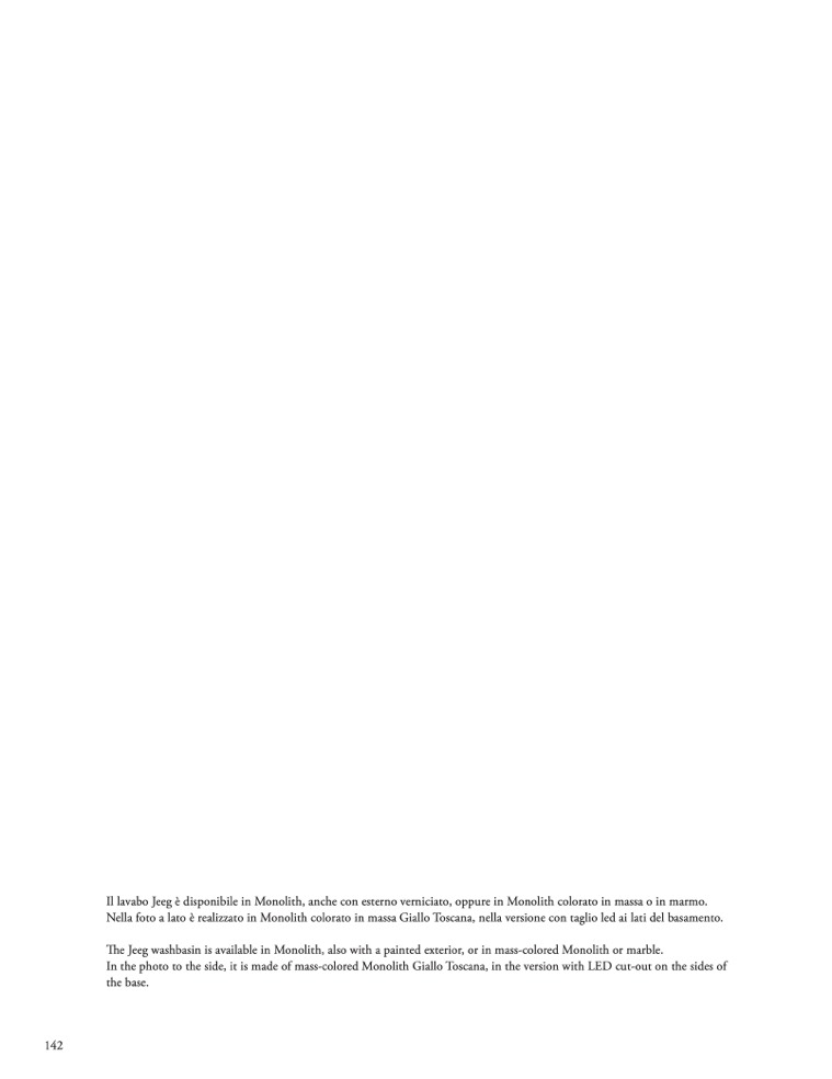 Il lavabo Jeeg è disponibile in Monolith, anche con esterno verniciato, oppure in Monolith colorato in massa o in marmo.