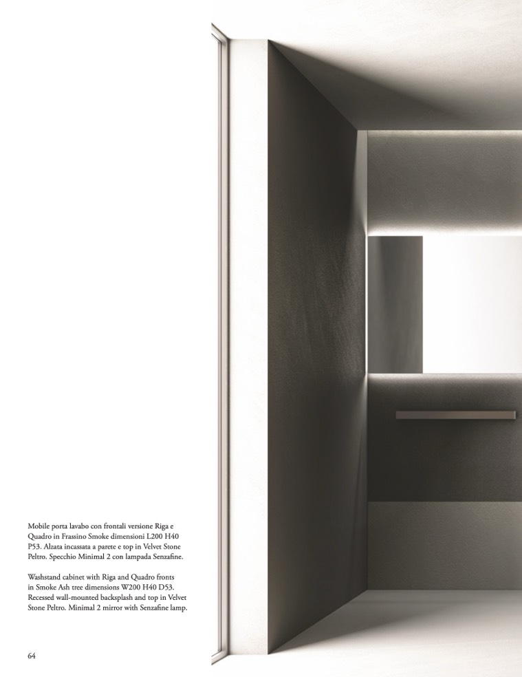 Stone Peltro. Minimal 2 mirror with Senzafine lamp.
