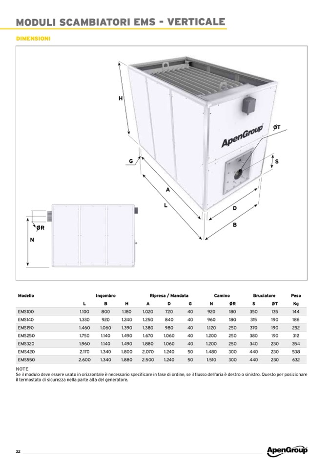 Se il modulo deve essere usato in orizzontale è necessario specificare in fase di ordine, se il flusso dell’aria è destro o sinistro. Questo per posizionare