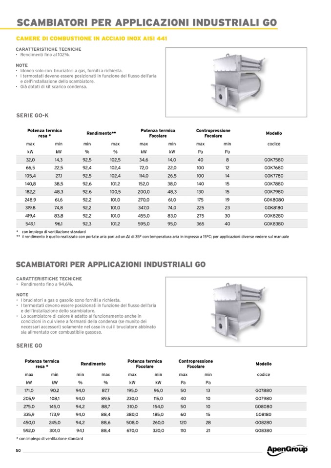 ∆t di 35° con temperatura aria in ingresso a 15°C; per applicazioni diverse vedere sul manuale