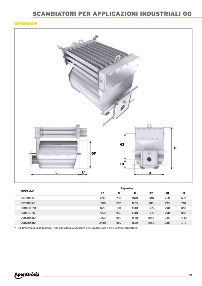 * La dimensione di ingombro L non considera lo spessore delle guarnizioni e delle piastre bruciatore.