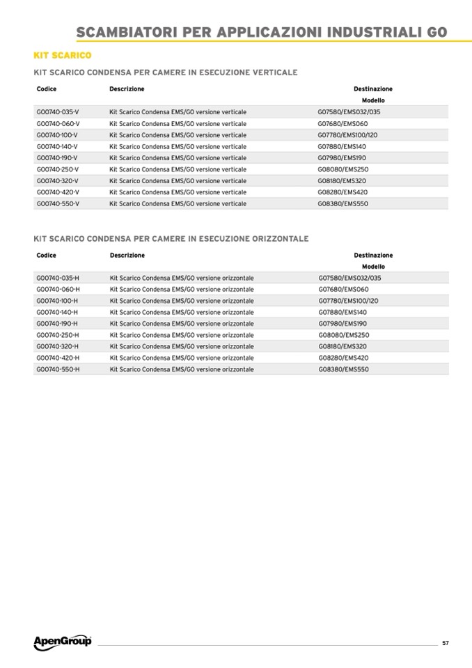 Kit Scarico Condensa EMS/G0 versione orizzontale