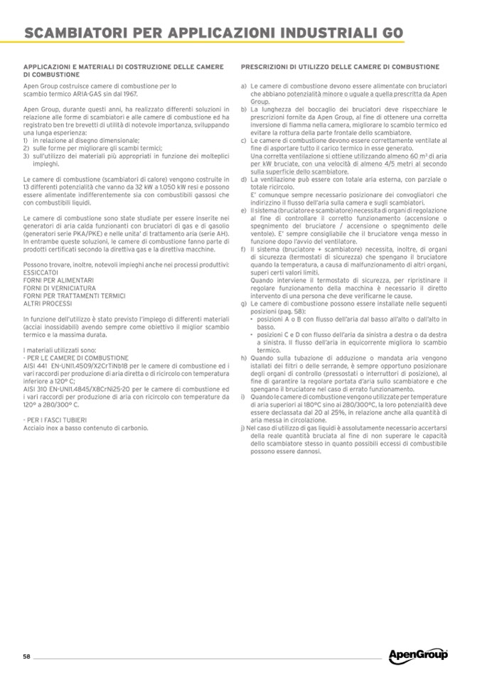 relazione alle forme di scambiatori e alle camere di combustione ed ha