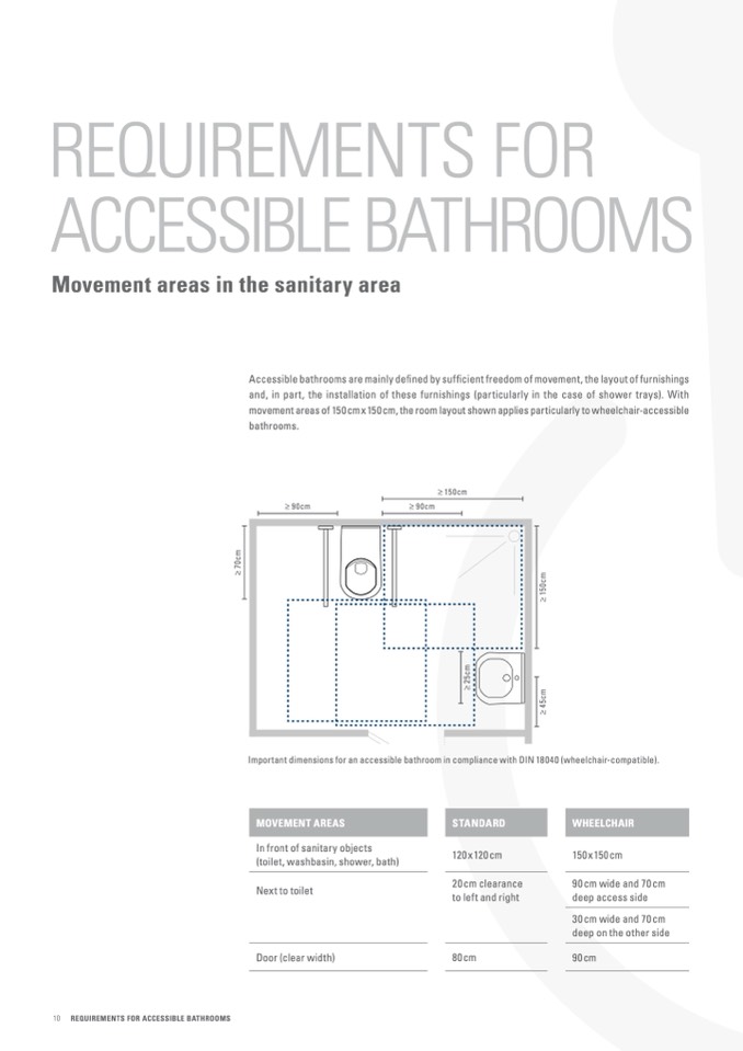 movement areas of 150cmx150cm, the room layout shown applies particularly to wheelchair-accessible