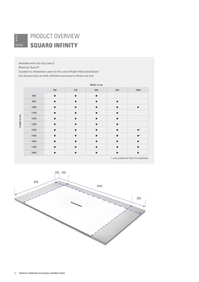 38 PRODUCT OVERVIEW ACCESSIBLE SHOWER TRAYS