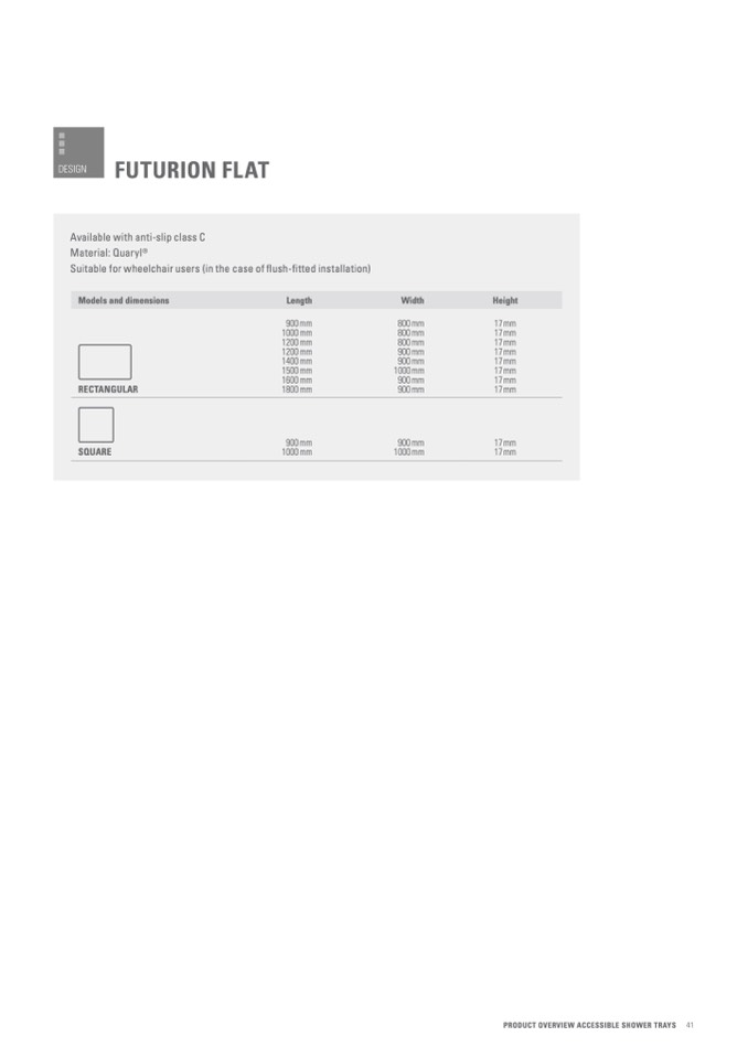 PRODUCT OVERVIEW ACCESSIBLE SHOWER TRAYS 41