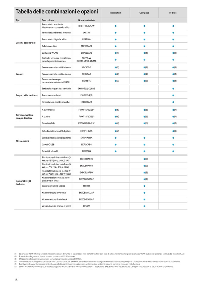 (9) Solo 1 riscaldatore di backup può essere collegato a un'unità: 3 o 6* o 9 kW (*No modello 6T1 applicabile). EKECBUCO*AF è necessario per collegare il riscaldatore di backup all'unità principale.