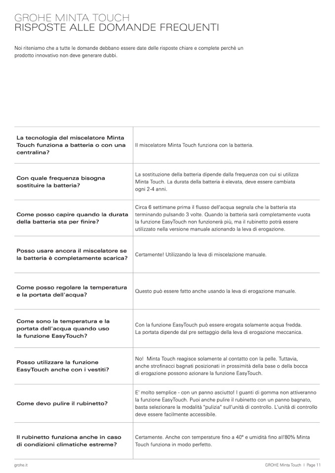 Minta Touch. La durata della batteria è elevata, deve essere cambiata