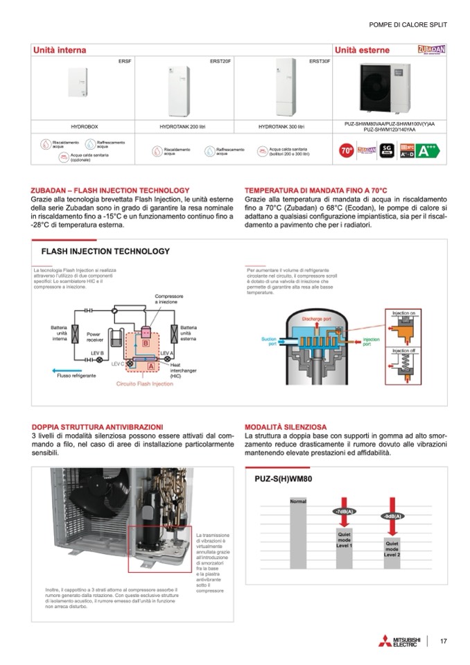 fino a 70°C (Zubadan) o 68°C (Ecodan), le pompe di calore s