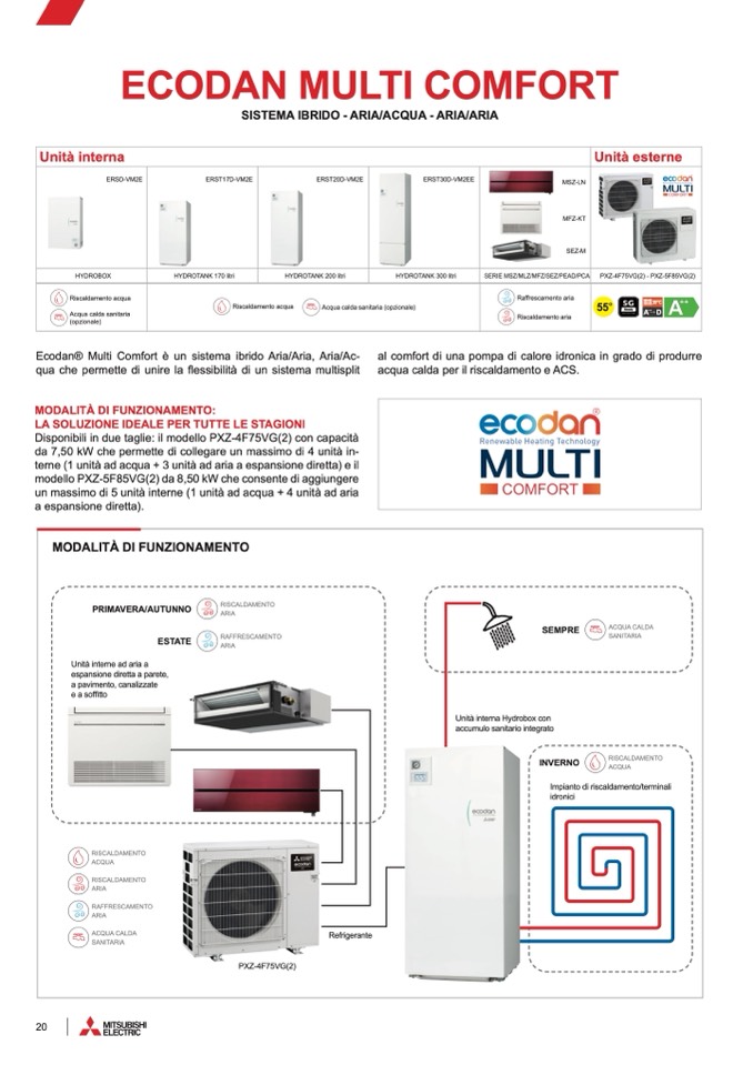 Ecodan® Multi Comfort è un sistema ibrido Aria/Aria, Aria/Ac