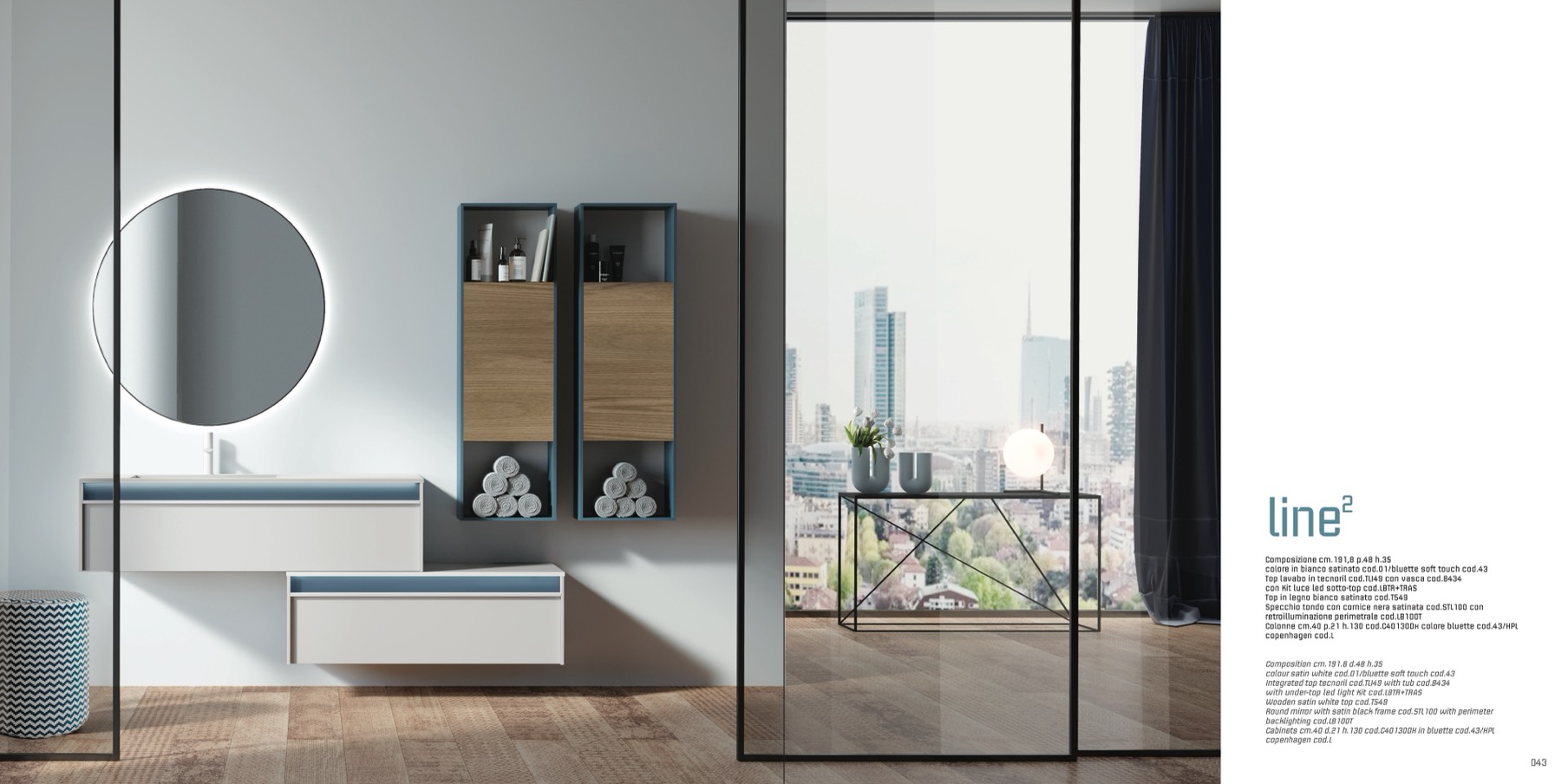 colore in bianco satinato cod.01/bluette soft touch cod.43