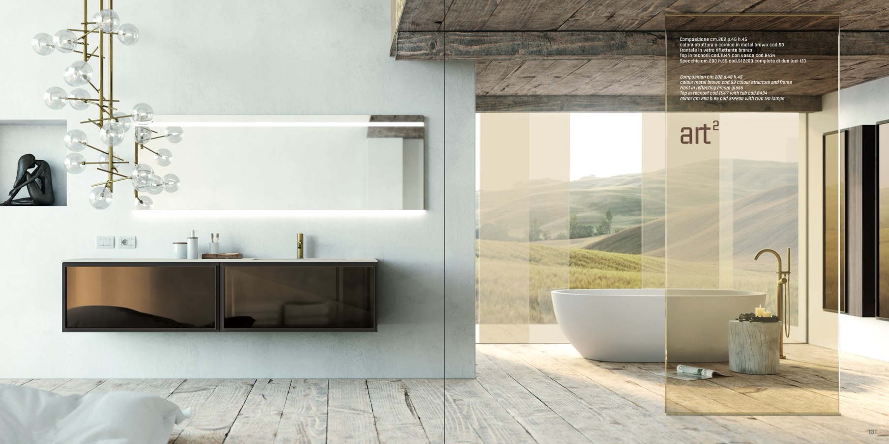 Mirror cm.200 h.65 cod.SF2200 with two LED lamps