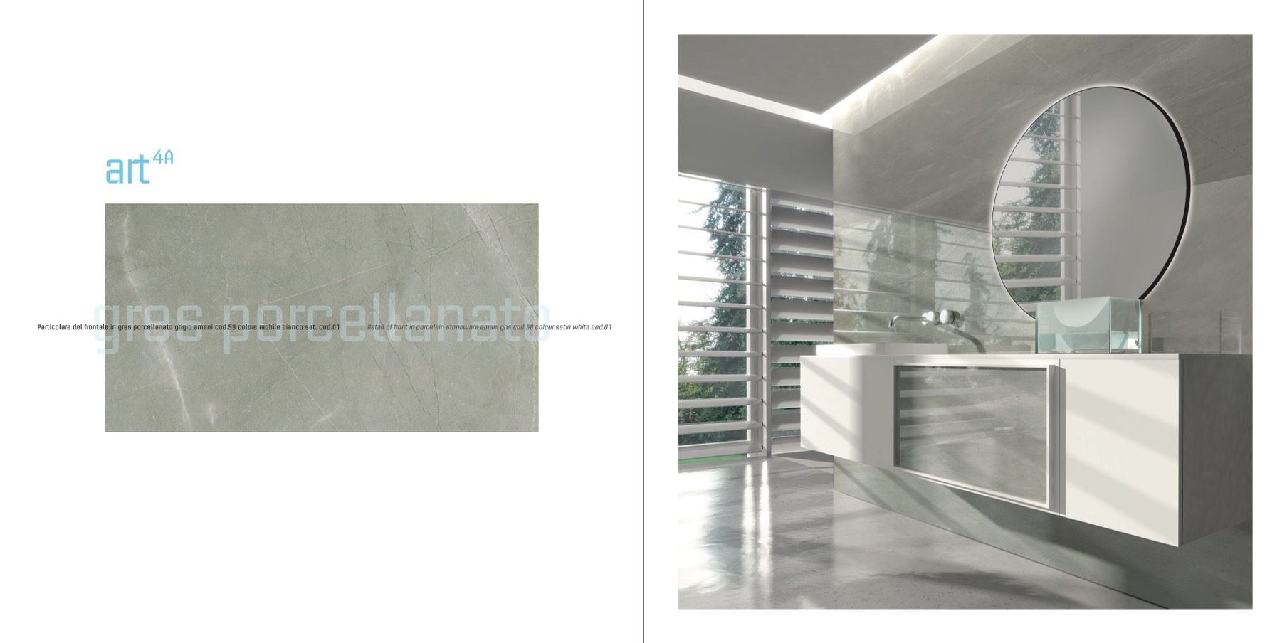 Particolare del frontale in gres porcellanato grigio amani cod.58 colore mobile bianco sat. cod.01