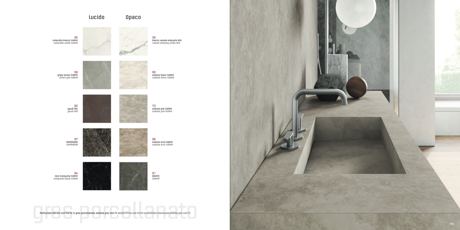 Particolare del top cod.TLI47A in gres porcellanato ardoise gris cod.73 Dettail of top cod.TLI47A in porcellain stoneware ardoise gris cod.73