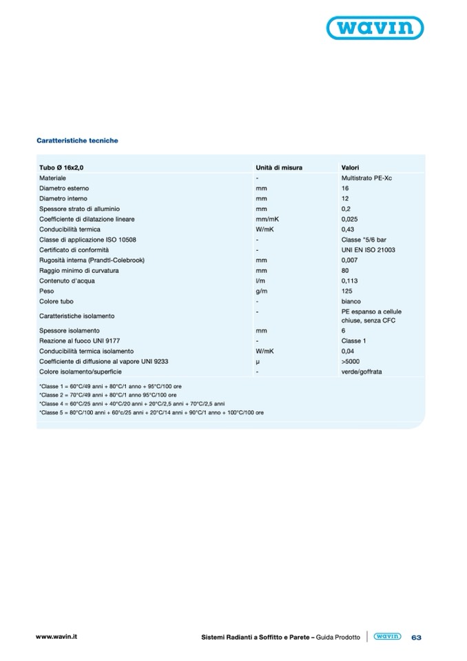 *Classe 2 = 70°C/49 anni + 80°C/1 anno 95°C/100 ore