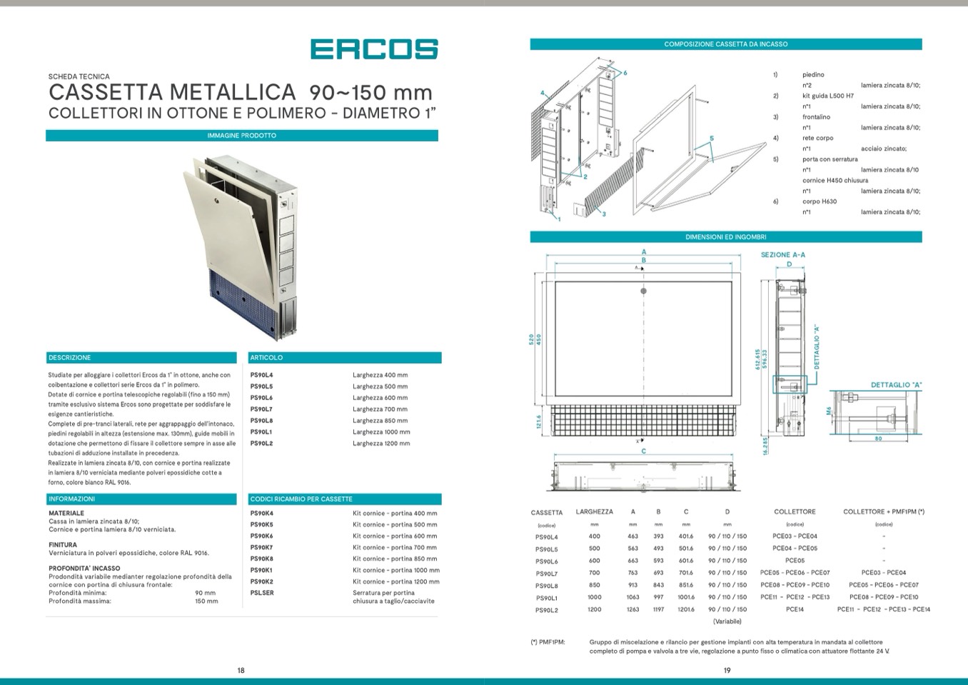 Studiate per alloggiare i collettori Ercos da 1” in ottone, anche con