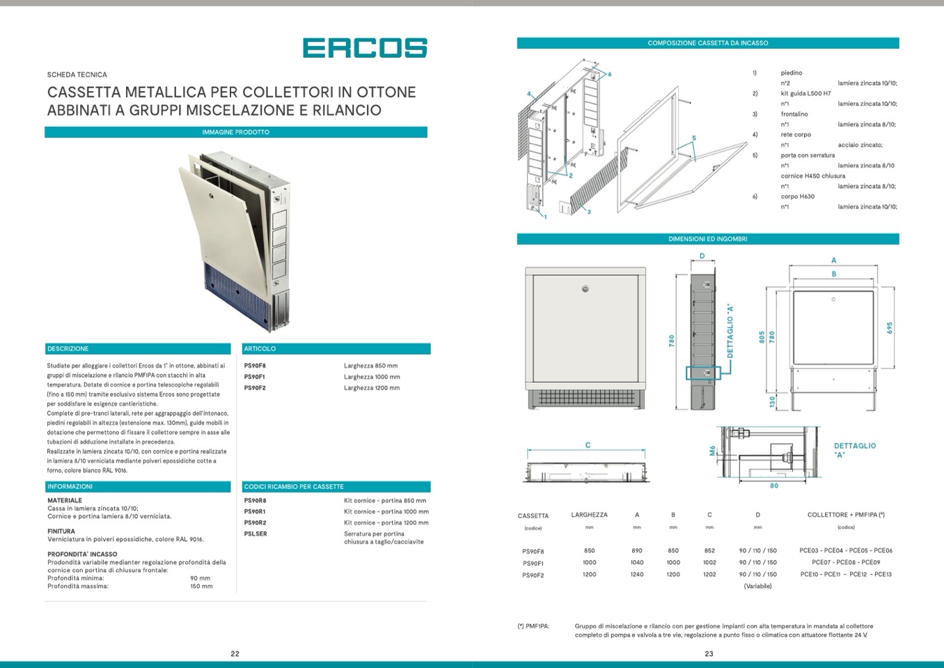 Studiate per alloggiare i collettori Ercos da 1” in ottone, abbinati ai