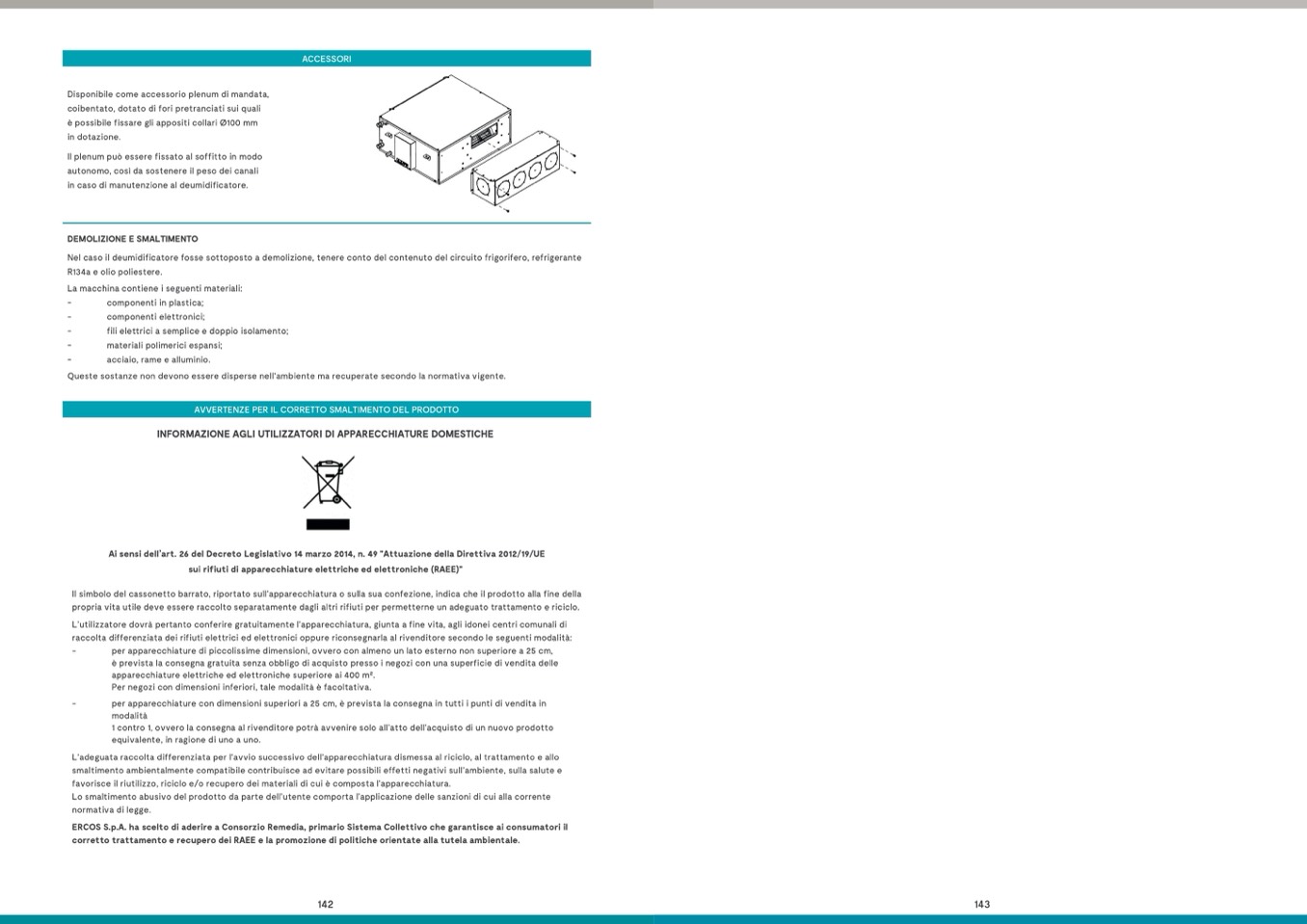 Nel caso il deumidificatore fosse sottoposto a demolizione, tenere conto del contenuto del circuito frigorifero, refrigerante