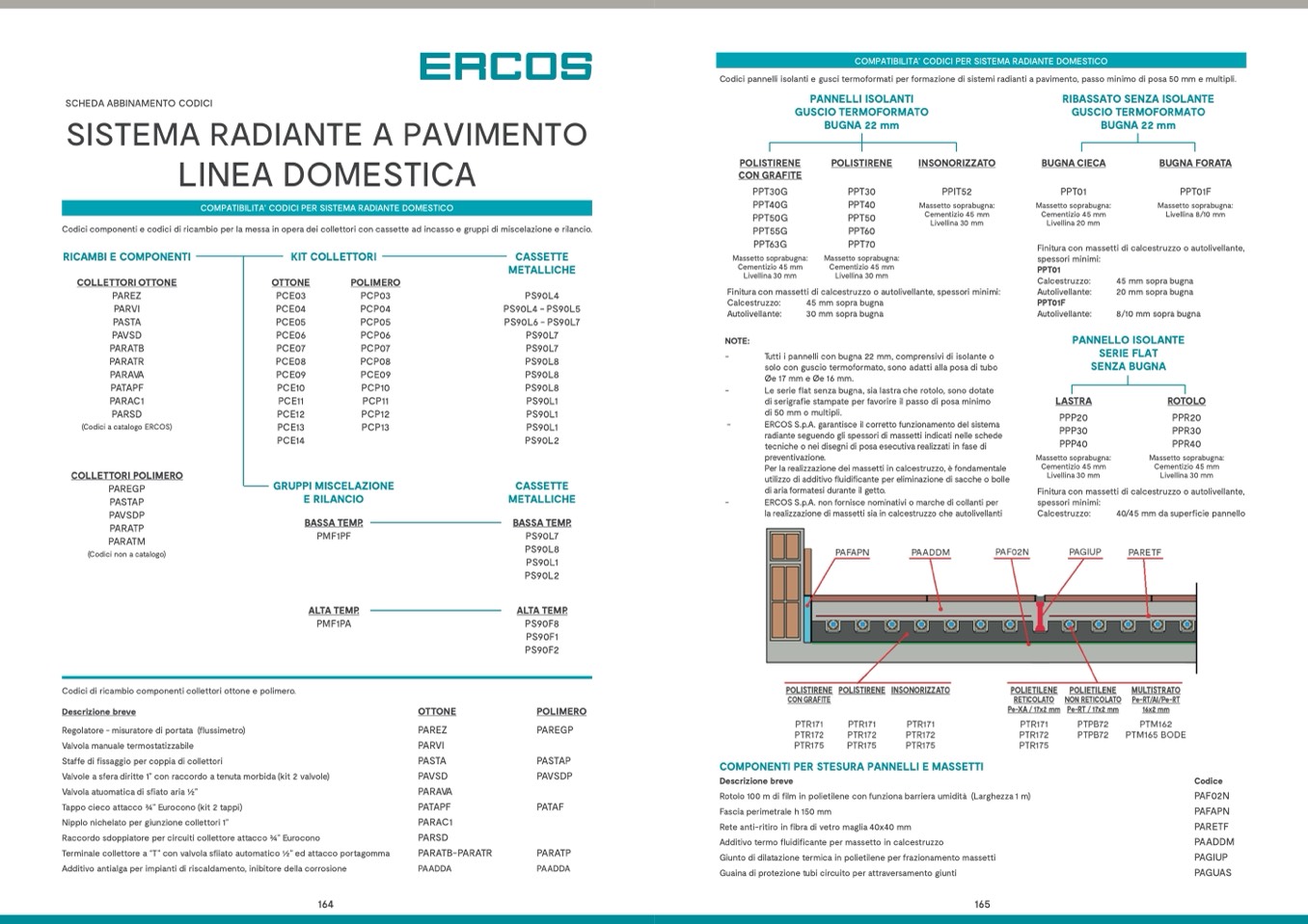 Codici componenti e codici di ricambio per la messa in opera dei collettori con cassette ad incasso e gruppi di miscelazione e rilancio.