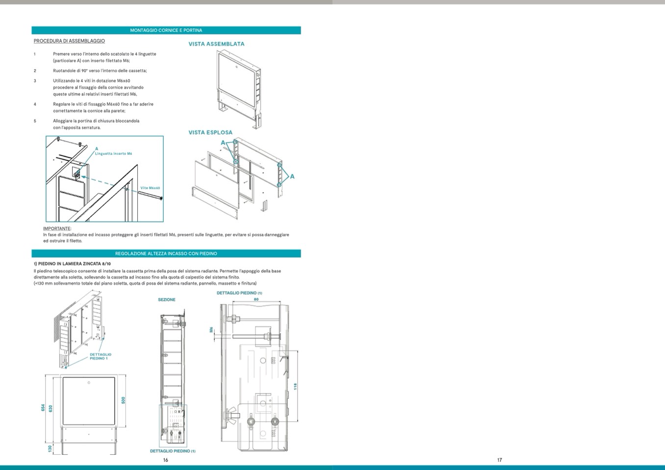 In fase di installazione ed incasso proteggere gli inserti filettati M6, presenti sulle linguette, per evitare si possa danneggiare