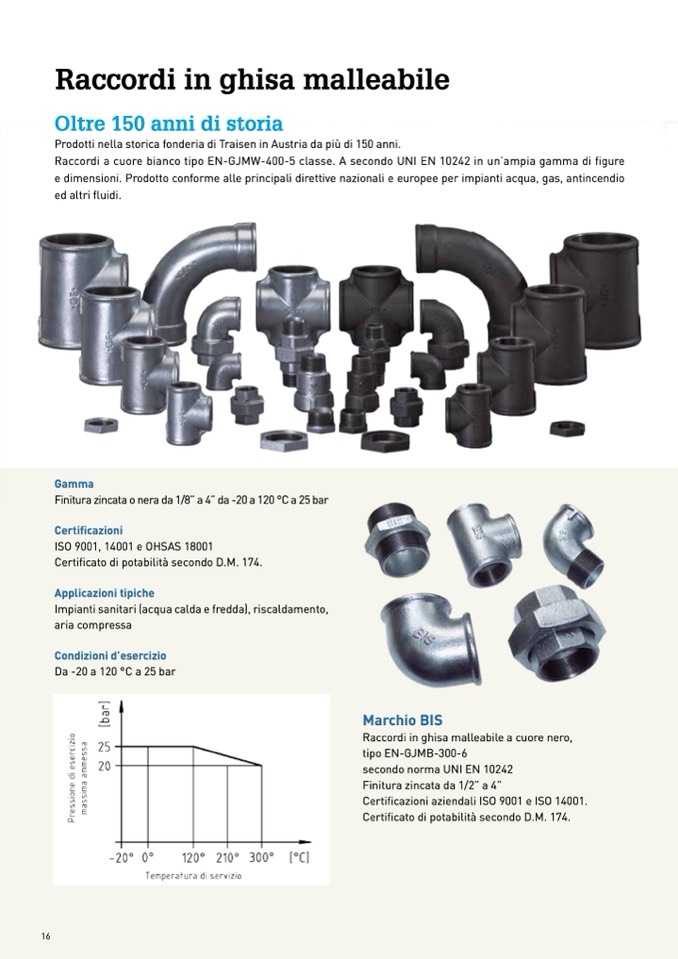 Raccordi a cuore bianco tipo EN-GJMW-400-5 classe. A secondo UNI EN 10242 in un’ampia gamma di figure