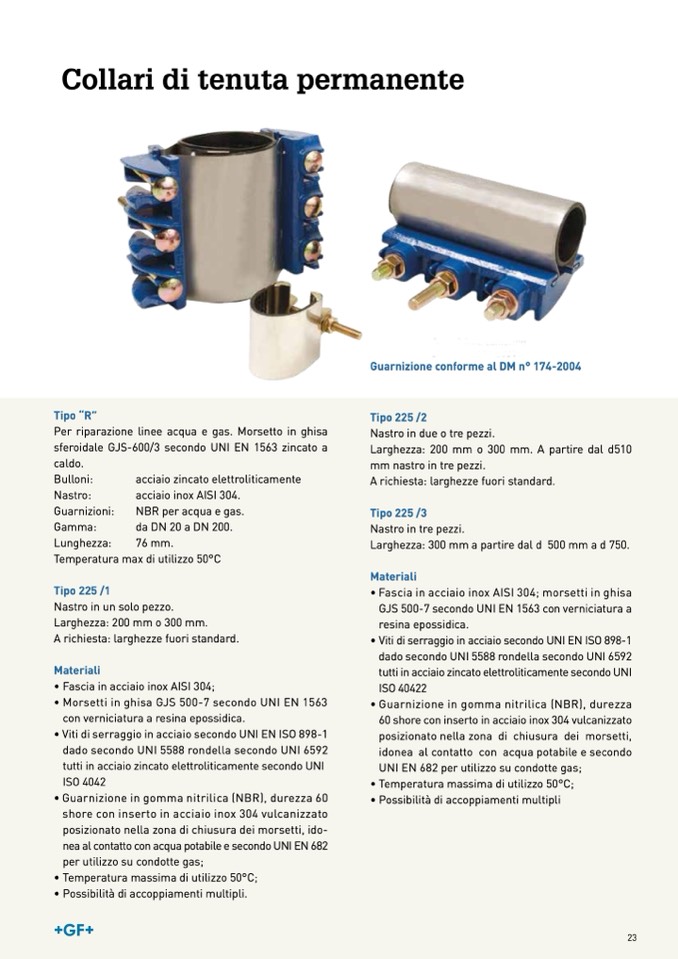 Guarnizione conforme al DM n° 174-2004