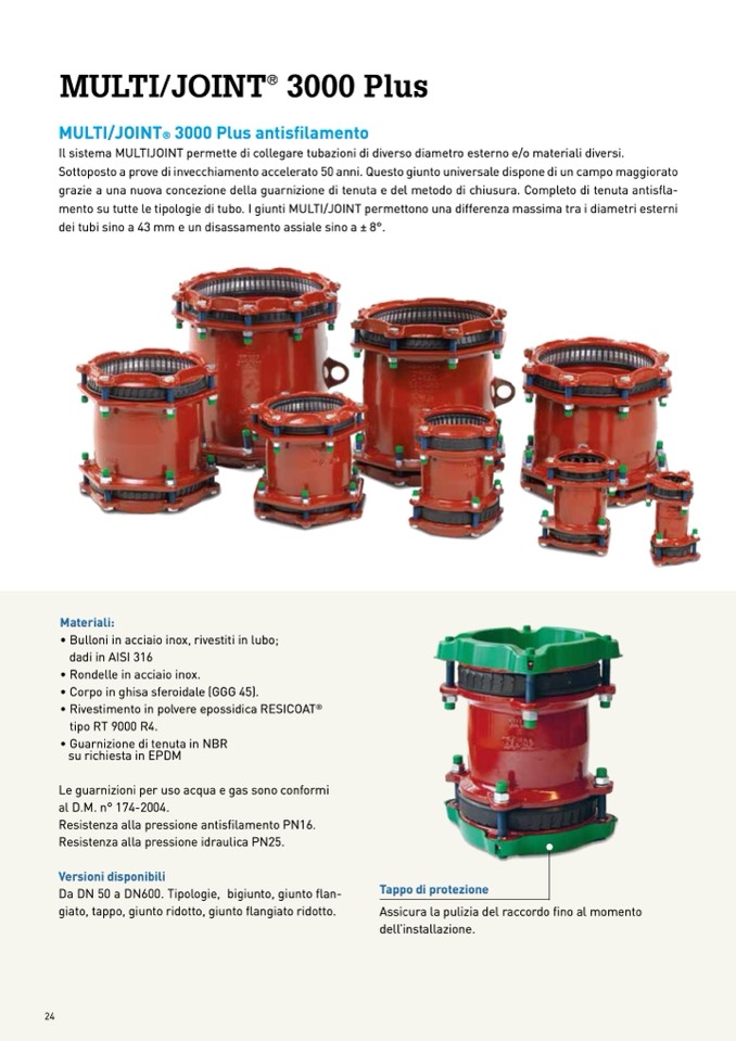 mento su tutte le tipologie di tubo. I giunti MULTI/JOINT permettono una differenza massima tra i diametri esterni