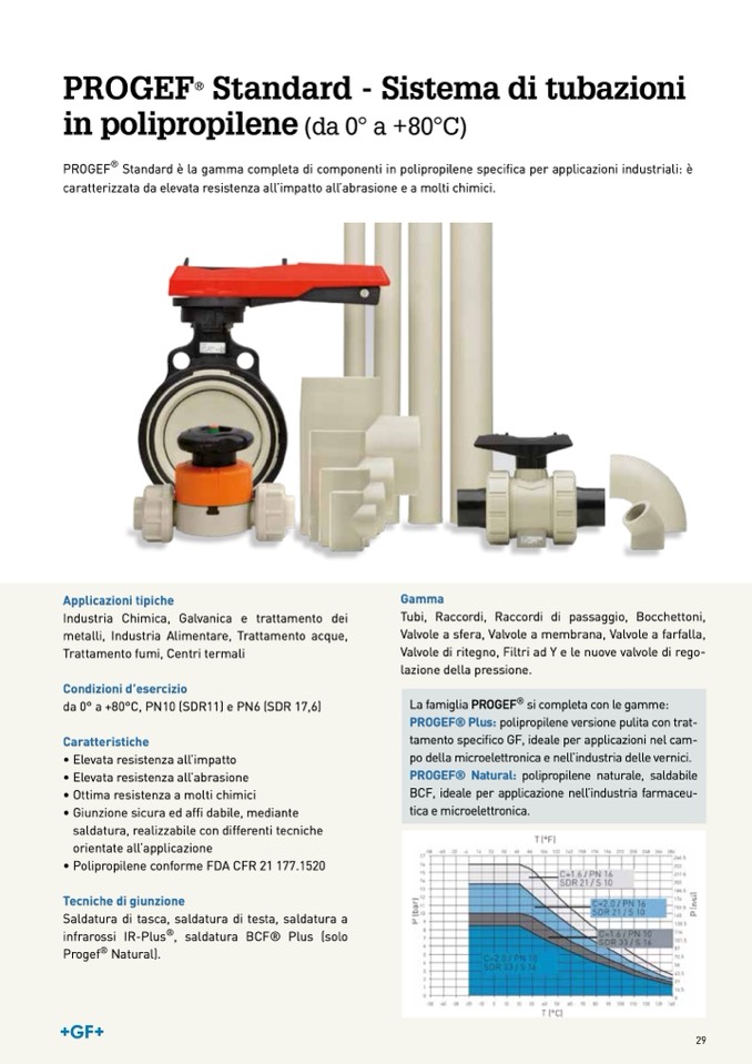PROGEF® Standard è la gamma completa di componenti in polipropilene specifica per applicazioni industriali: è