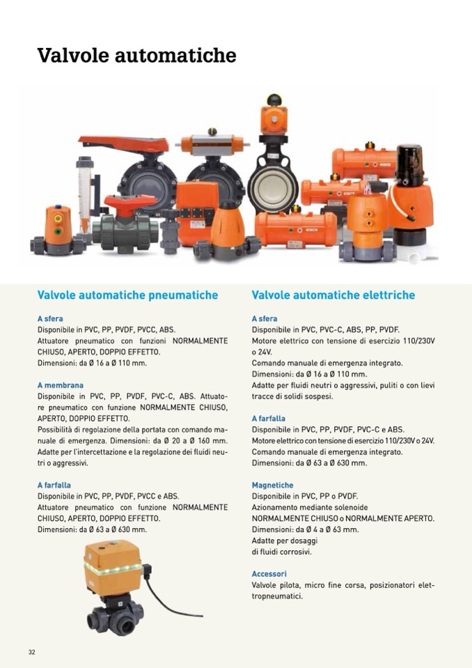 Disponibile in PVC, PP, PVDF, PVC-C, ABS. Attuato-