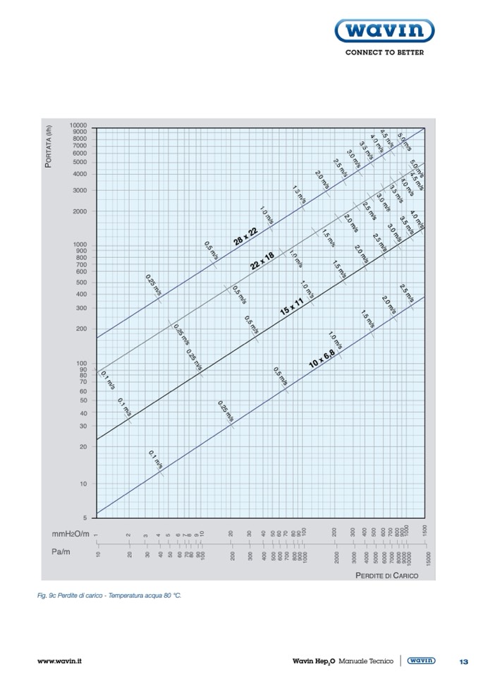 Fig. 9c Perdite di carico - Temperatura acqua 80 °C.