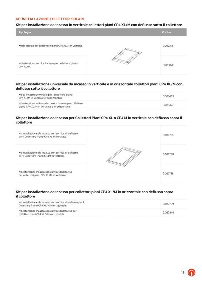 Kit estensione cornice incasso per collettore piano