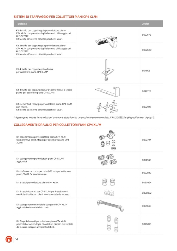 * Aggiungere, in tutte le installazioni ove non è stato fornito un pacchetto solare completo, il kit 3.022922 e gli specifici telai di pag. 12.