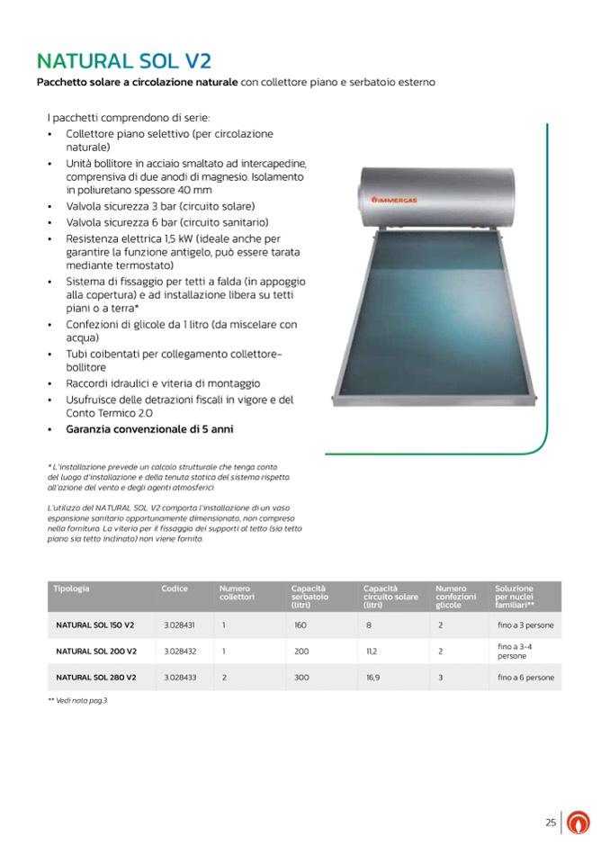 Pacchetto solare a circolazione naturale con collettore piano e serbatoio esterno