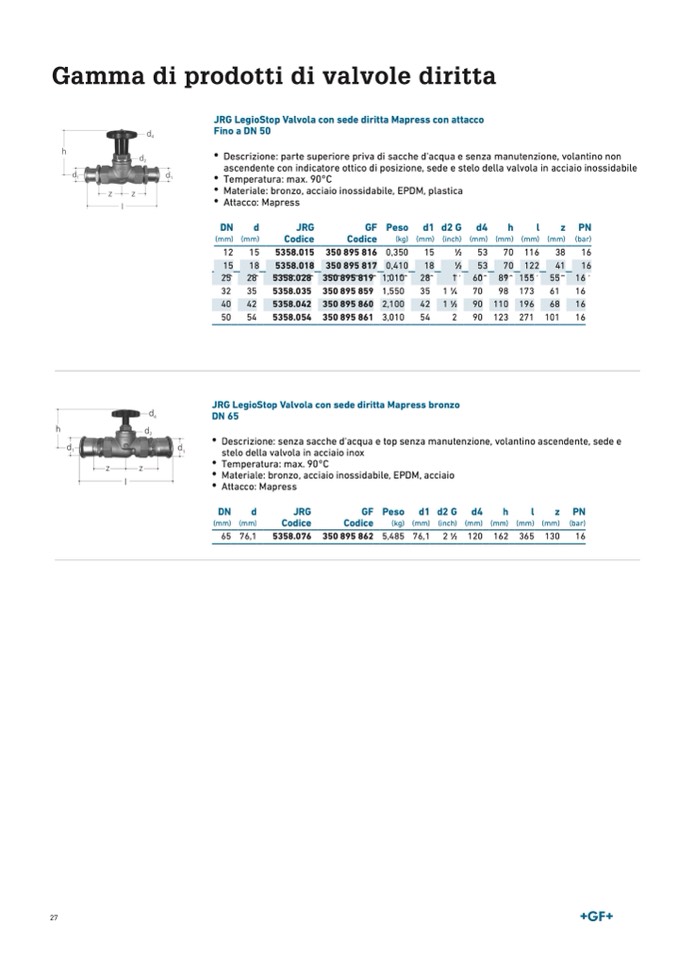 JRG LegioStop Valvola con sede diritta Mapress con attacco