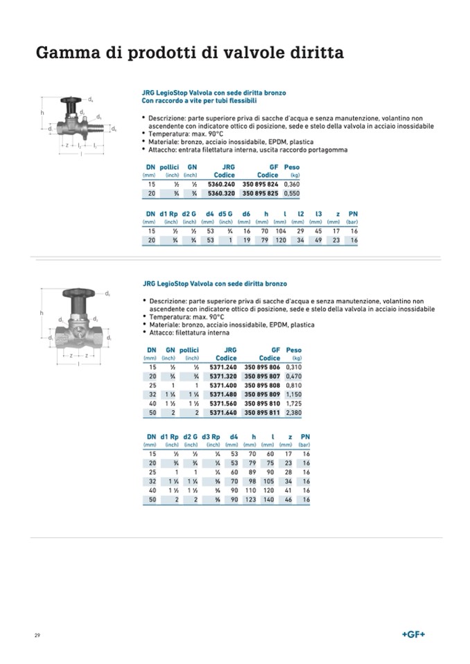 JRG LegioStop Valvola con sede diritta bronzo
