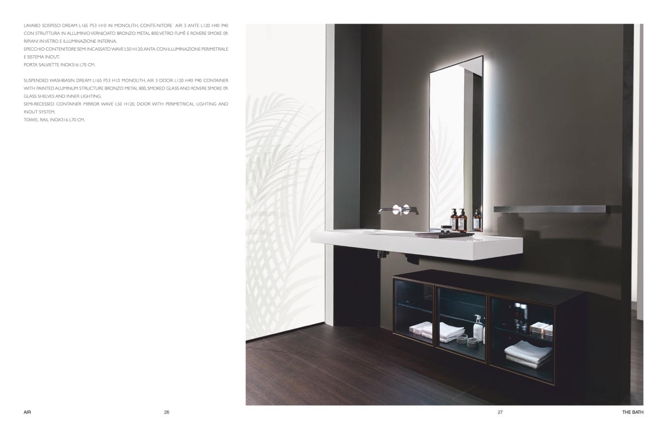 LAVABO SOSPESO DREAM L165 P53 H10 IN MONOLITH, CONTE-NITORE AIR 3 ANTE L120 H40 P40