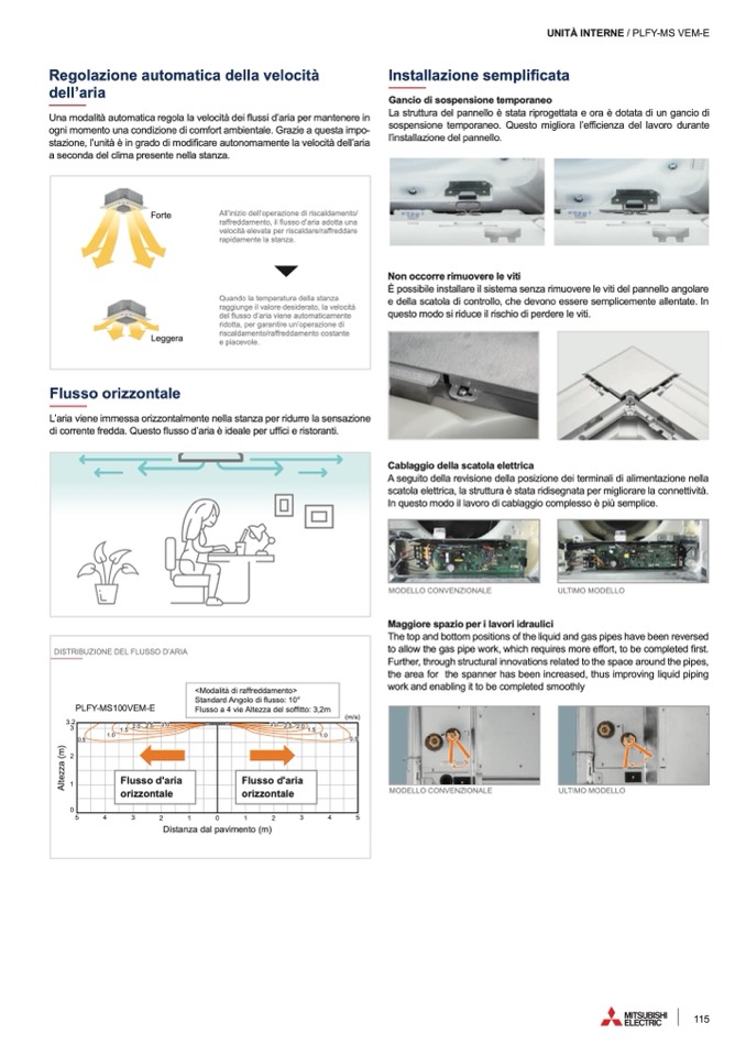 di corrente fredda. Questo flusso d’aria è ideale per uffici e ristoranti.